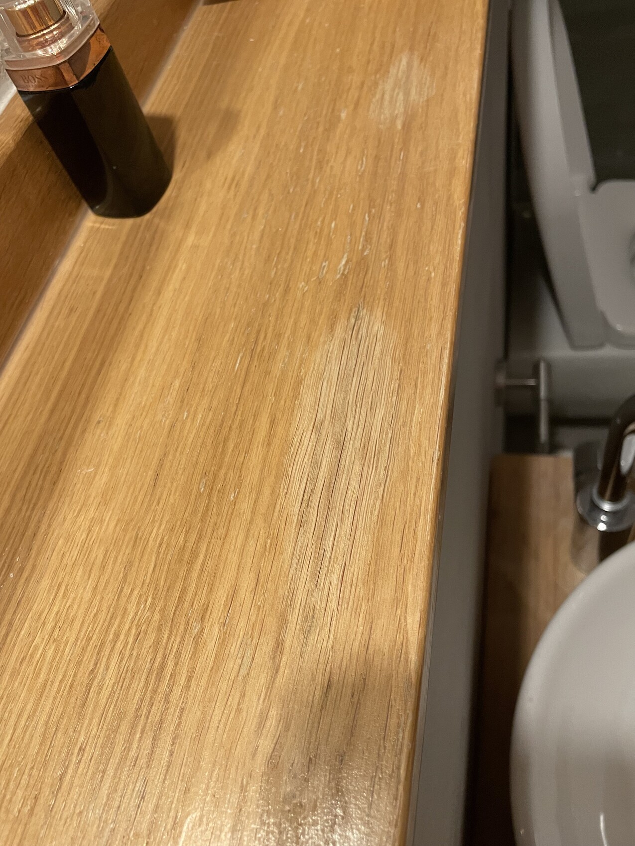 ich habe im Bad eine Ablage in Massiv-Eiche, die mit Klarlack lackiert ist. Leider hat sich durch die Flüssigkeit von Kontaktlinsen die Lackierung entfernt. Jetzt ist die Stelle heller als der Rest der Ablage. Ich habe die Stelle etwas angeschliffen und mit Kunstharz Klarlack gestrichen. Leider wird die Stelle nicht wieder dunkel. Kann mit einer sagen, mit welchem Lack das Holz wieder dunkel wird? Danke