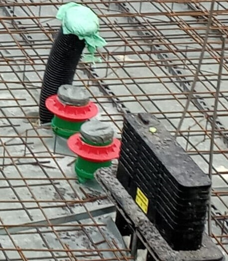 Bei den KG2000-Rohren wurden vor dem Gießen der Bodenplatte Mauerkragen gesetzt. Leider wurde dies bei dem Kabuflex vergessen.
