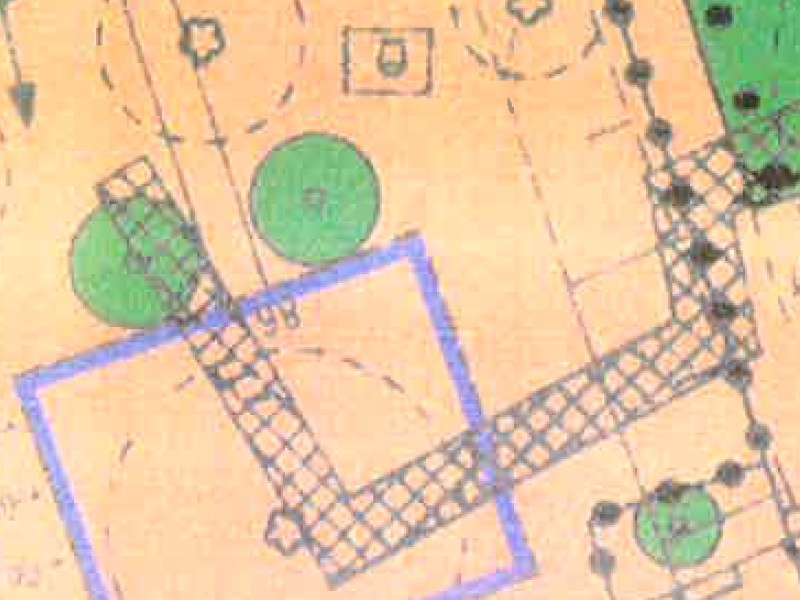 3. Auf dem Bebauungsplan gibt es ist etwas eingezeichnet, was ich nicht zuordnen kann. Dieser ungerade "Weg" mit der Karomusterung, siehe Anlage.