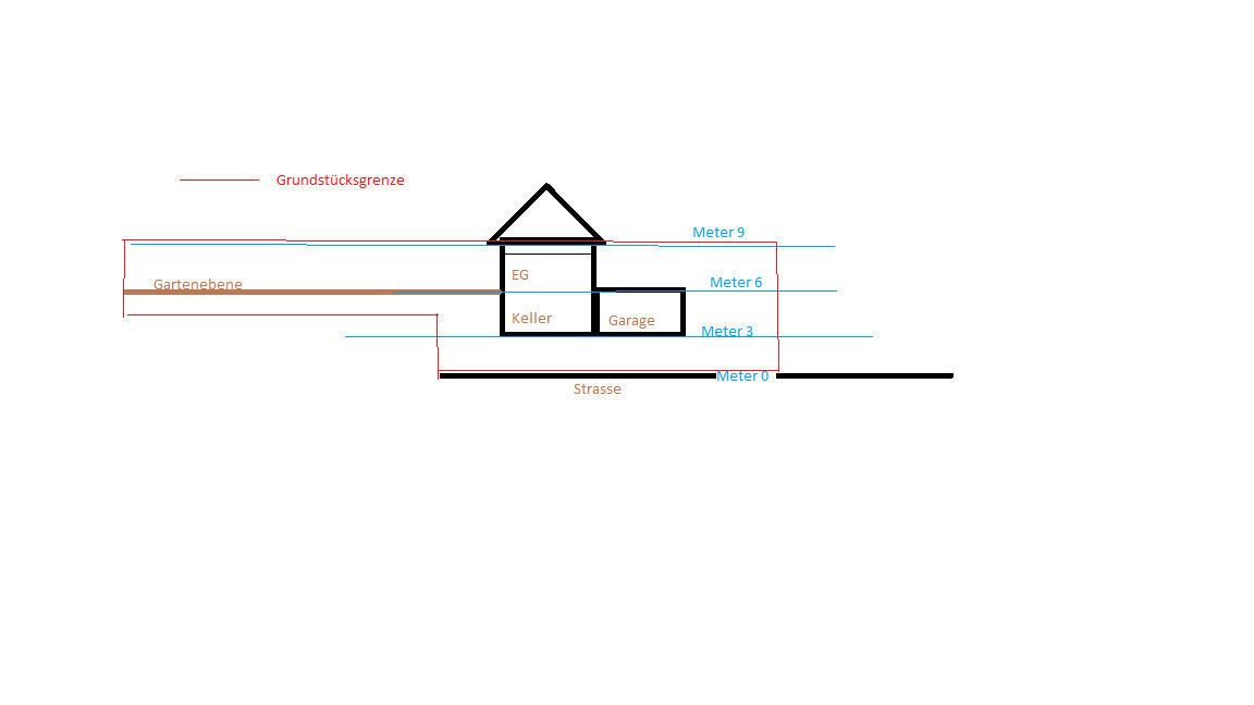Hier mal eine Höhenskizze wie ich es mir vorstelle. Und auch noch die Himmelsrichtungen bei der anderen Skizze hinzugefügt.