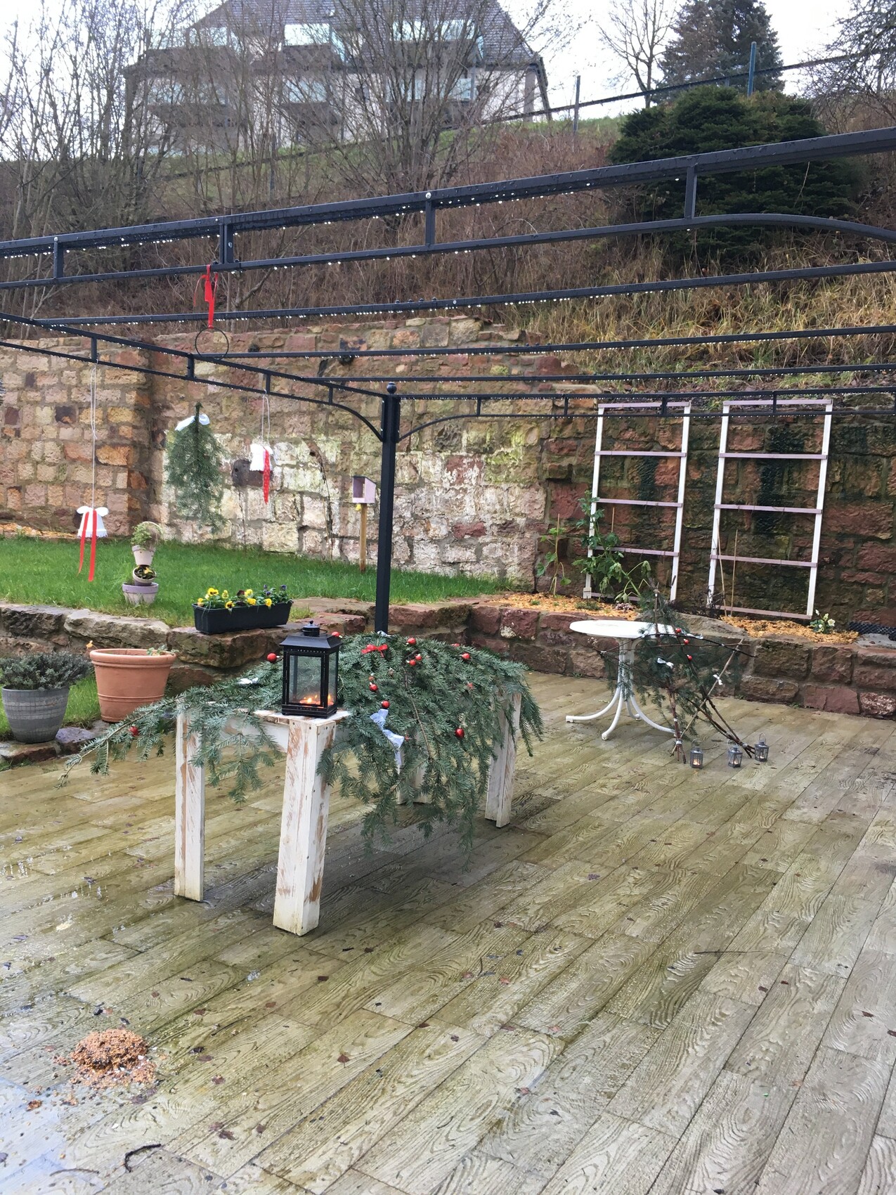 Legt Terrassen an. 1 Ebene für Essen, Grillen