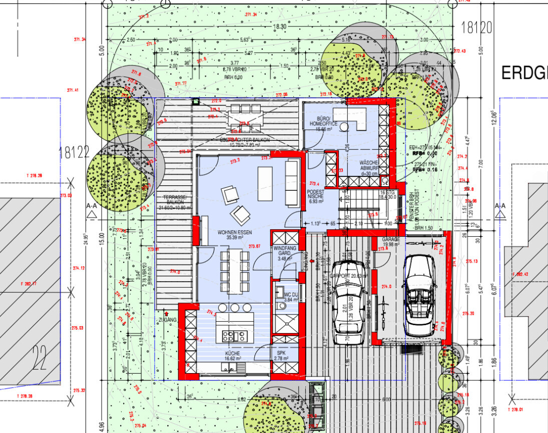 Wir haben es mit einem Architekten entworfen, sodass wir auch im Alter noch darin leben können.Gehe ich richtig in der Annahme, dass geplant ist, den Durchgang zwischen WZ und Treppenhaus dicht zu machen machen und dann im Allraum mit den anhängenden Abstellräumen zu wohnen? Ein Bad von ü12qm mit einem Wohnklo zu tauschen, wo man keine Bewegungsfläche hat? Wozu ist denn die Dusche im EG? Wo eine Dusche ist, sollte auch mind. ein Qm Bewegungsfläche vorhanden sein, dass man sich abtrocknen und anziehen kann.Sehr Ihr Euch tatsächlich im Alter in einem Allraum wohnen? Ich muss gestehen: für mich ist die ganze Eingangssituation unter dem Carport ein Nogo. Freunde, Paketzusteller, Gruppe von Kindern, aber auch Fremde müssen am Fahrzeug langgehen, um eine Tür zu finden. Ich mein: wer so ein Haus plant, der fährt ja keinen 10 Jahre alten Kleinwagen, den eine Schramme nichts ausmacht.