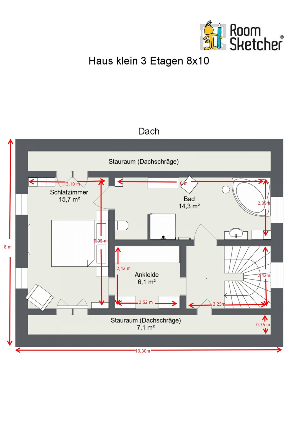 50 cm rund ums Bett als Gänge, das sind doch Maulwurfgänge . Und dann der Slalom durch die Ankleide ins Schlafzimmer.