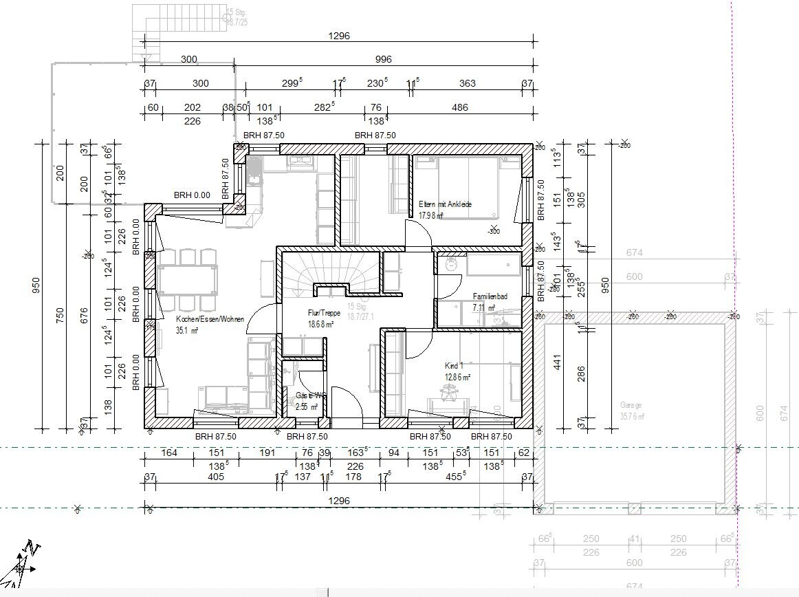 Die Bemaßung kommt vom Programm, kann ich nichts machen. Der Entwurf vom Architekten kommt erst noch.