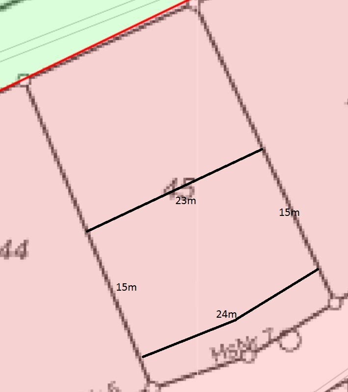 Wie würdet Ihr denn den v)orhanden Bauraum nutzen? Der Grundstücksplan ist nach Nord - Süd ausgerichtet. Zufahrt muss von Süd-Süd-Ost erfolgen.