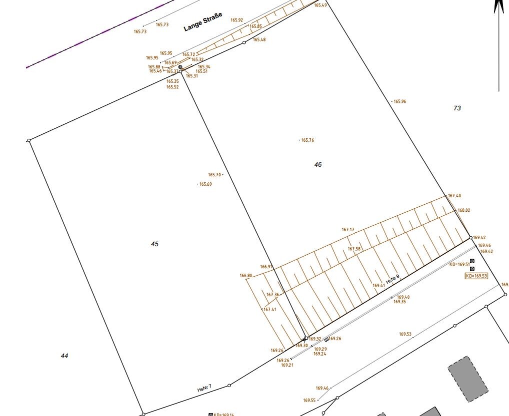 - Hangneigung auf den ersten ca 5m (Vermessung vom zuvor geplanten Grundstück anbei, der Hang zieht sich über das neue Grundstück weiter