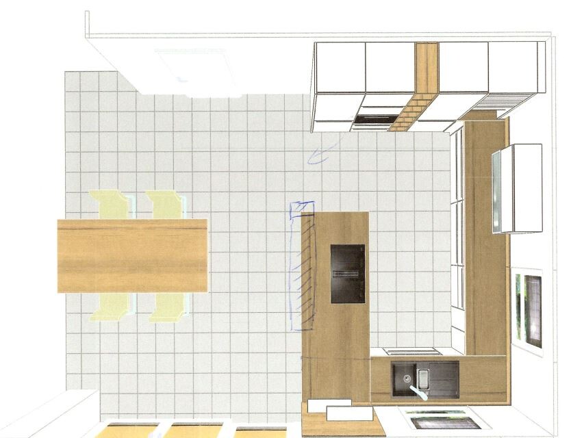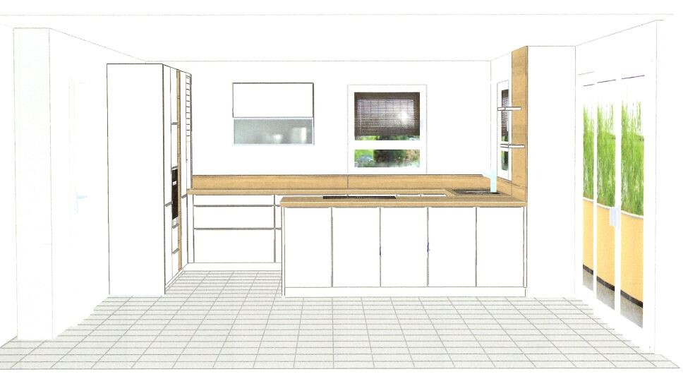 wir sind gerade mitten in der Hausplanung. Wir haben bereits eifrig mit der Küchenplanung begonnen. Bisher ist dabei die im Anhang befindliche Planung entstanden. Aus unserer jetzigen Sicht passt diese ganz gut, vielleicht übersehen wir aber auch etwas?