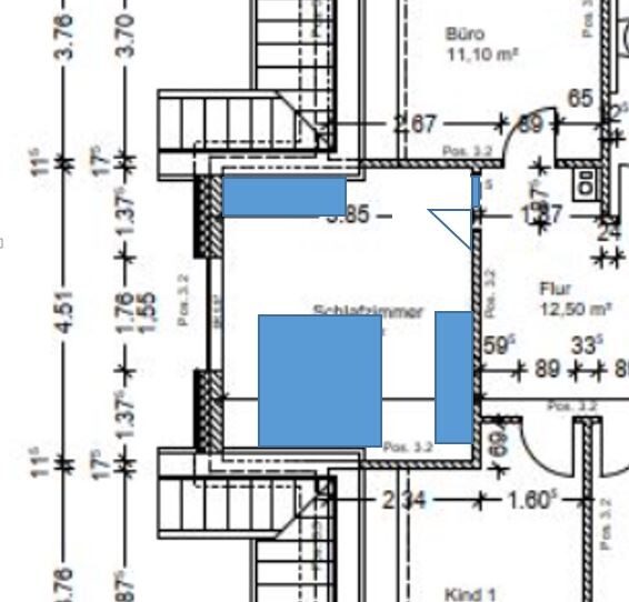 Eine Ankleide brauchen wir nicht. Sollte überwiegend im Schlafzimmer unterkommen. Das ist ja fast komplett ohne Dachschrägen. Wobei ich hier die Tür wohl noch verschiebe.