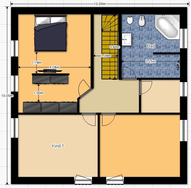 TE: Was wäre denn eine bessere Maßeinteilung für ein 9qm Zimmer? Wie würdest du das optimieren? Wir wollen einen schreibtisch drin haben, einen kleinen schrank und ein Bett, das man auf 160cm ausklappen kann.