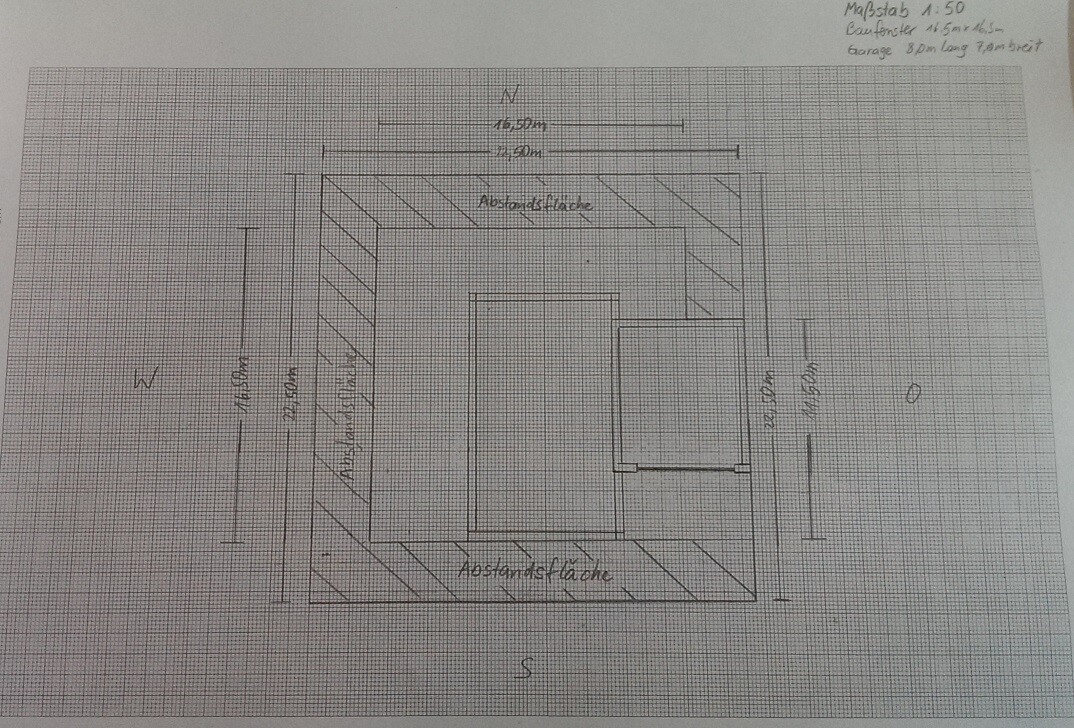 Das sieht gut aus, aber wir müssen im Norden 8m Grenze einhalten mit der Garage.
