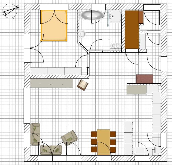 Mir kam noch n ganz blöder Gedanke indem ich das Treppenhaus nach oben links ziehe, dann Bad und Schlafzimmer, das werde ich gleich mal ausprobieren. Das Argument mit dem Schlafzimmer am Treppenhaus machte mich dann doch etwas nachdenklich ..