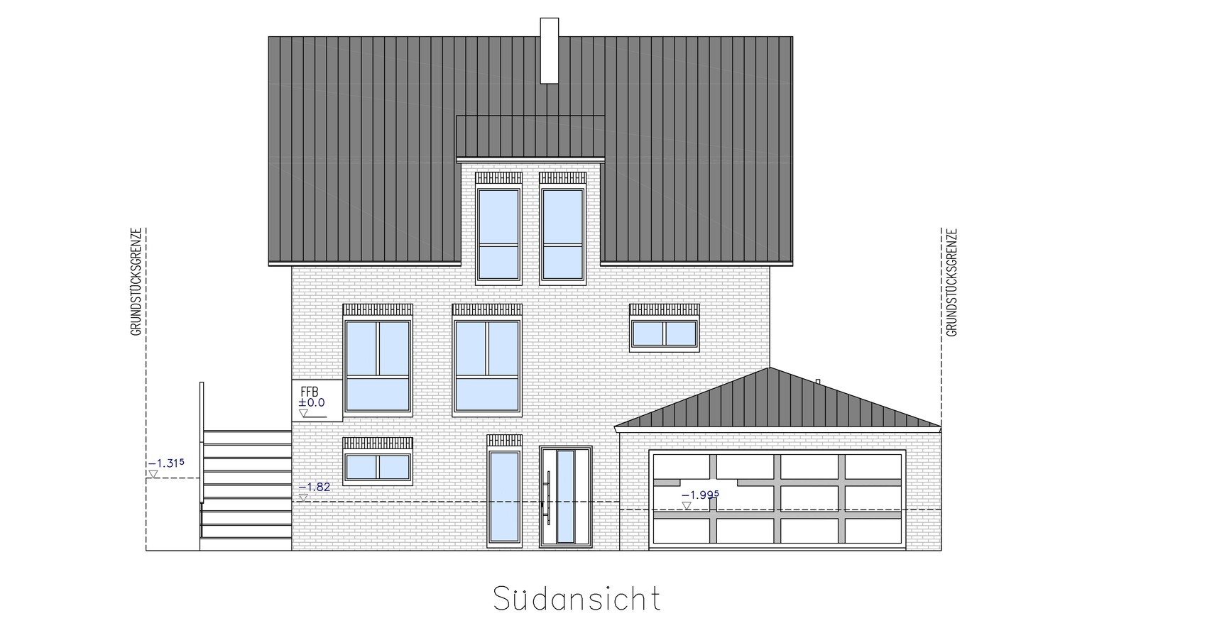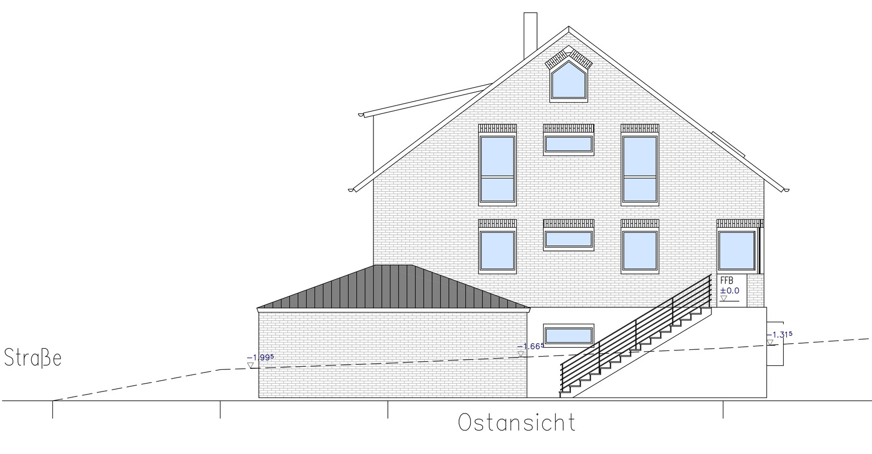 Auch die Ansichten gefallen uns so sehr gut. Es soll auf jeden Fall ein roter Klinker mit so einem dunklen Stich werden und die Fenster von außen in anthrazit. Die Gaube und das UG an der Ostseite werden in so einem anthrazit verputzt. Ich hoffe, so könnt ihr euch etwas drunter vorstellen.