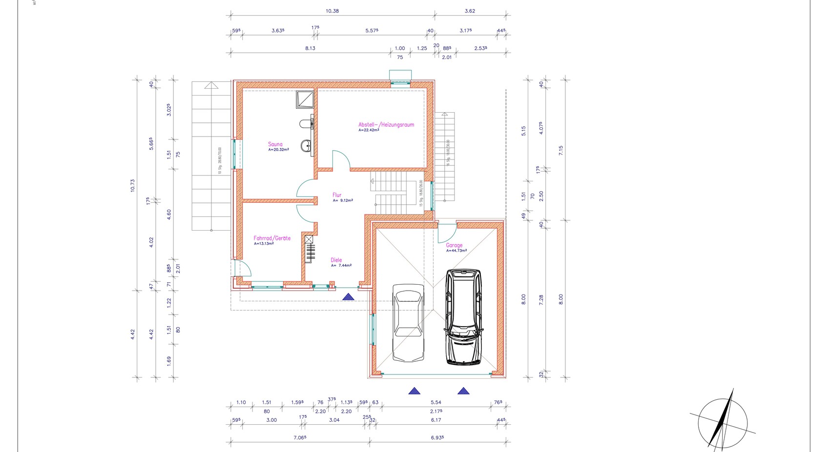 Bei uns war damals die Garage aber links vom Haus und darauf die Terrasse und auf der Nordseite noch die Verlängerung der Terrasse und der Garten.