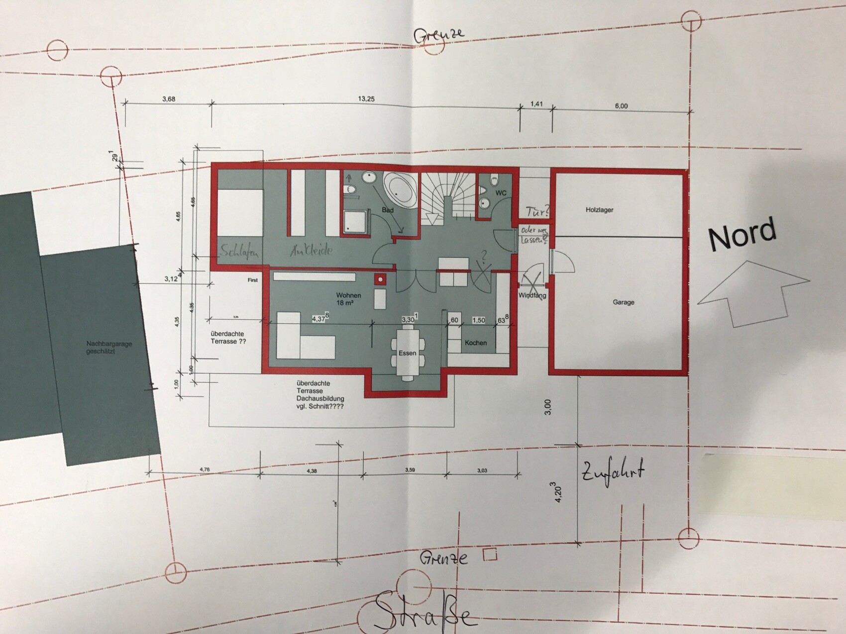 Für den Architekten soll es die Aufgabe sein, die Terrasse in Nähe der Küche unterzubringen 🙂