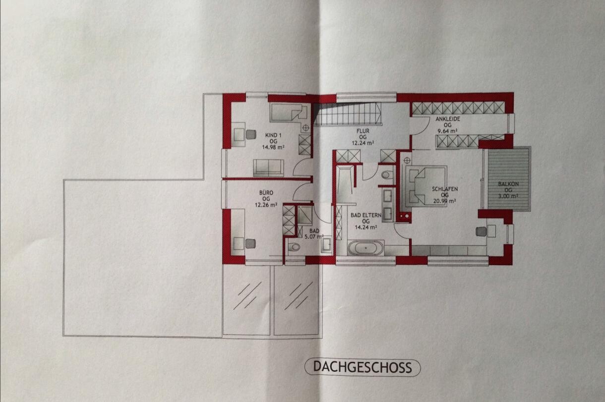 Zum Thema Gästebad: sicherlich könnte man bei zwei Kindern und dem grösserem Masterbad darauf verzichten, dennoch hättet Ihr nach Auszug einen schönen Gasttrakt mit separatem Dusch-WC. Alternative: Raum für Waschmaschine/Trockner.