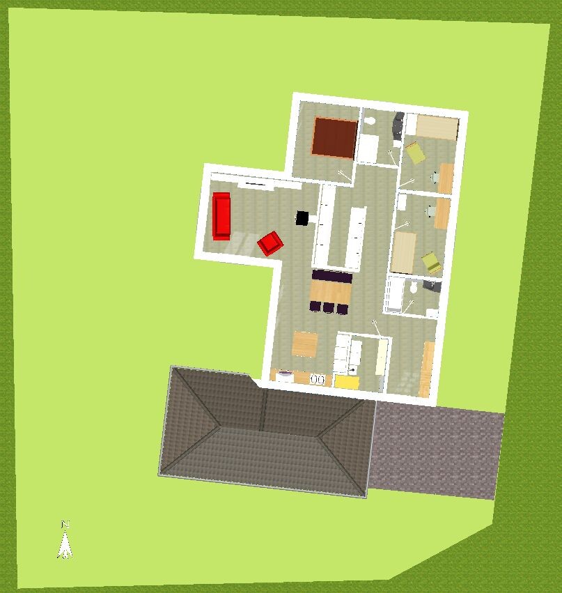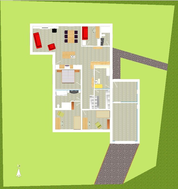 - Garage wieder von Ost befahrbar, Zuweg auch gleichzeitig Zuweg zur Eingangstür ... optimierte Schneeschiebbedingungen. Einfahrt so lang, dass dort auch mal ein Auto stehen kann.