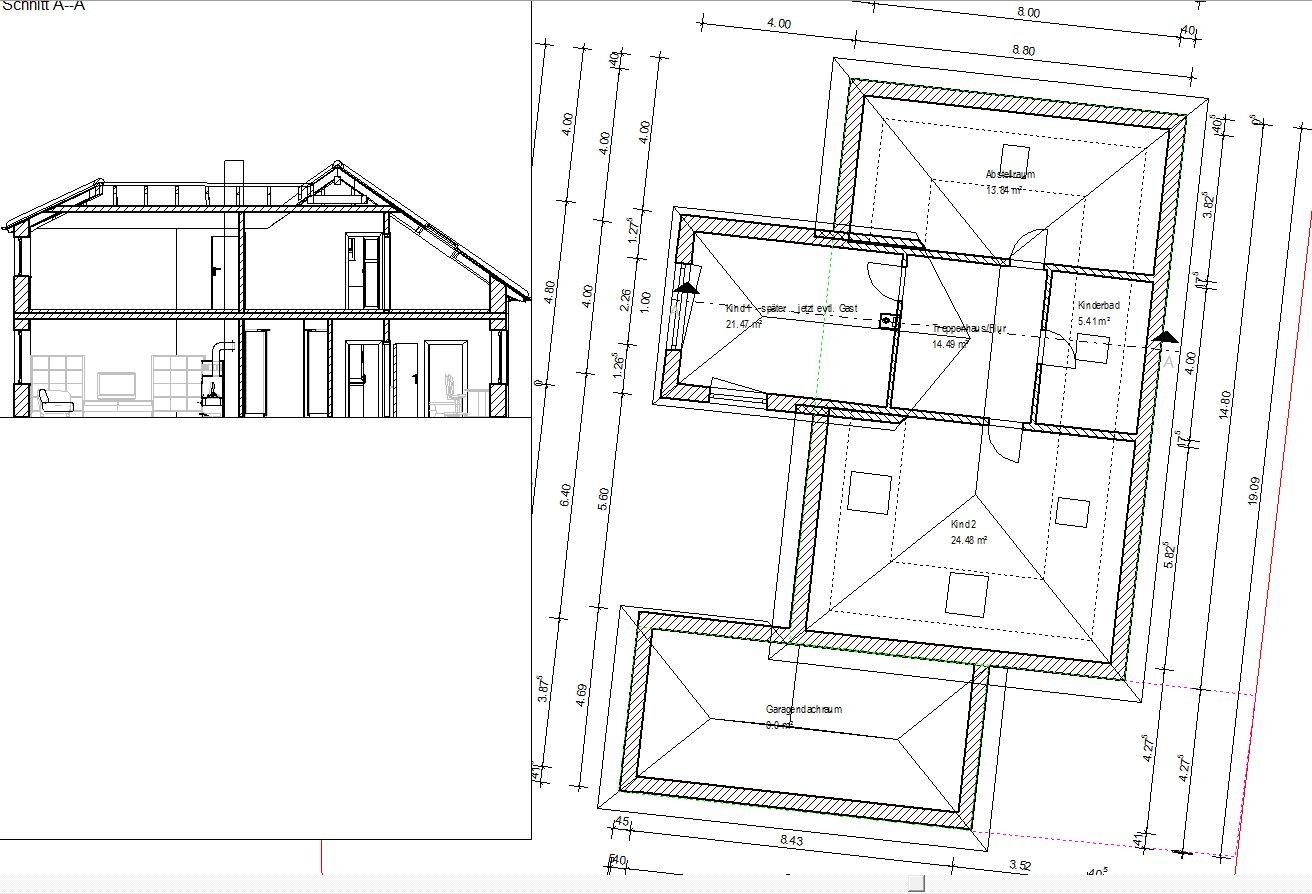 - Im DG könnten durch die Gaube 2 große Kinder/Jugendzimmer und ein Bad ausgebaut werden. Weiterhin würde noch Abstellfläche bleiben.