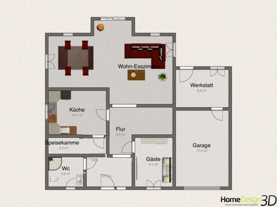 Den Schornstein haste vergessen, und für den Kaminofen an der Stelle sehe ich schwarz. Ich seh ja die qm Zahl und kann daraus einigermaßen die Längen erahnen. Das passt so nicht.