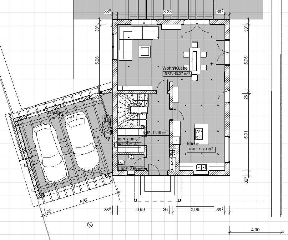 ja uns wir fahren zwei "Premiumschlitten" und ich würde mein Auto nie in einem Carport stehen lassen, besonders im Winter oder bei Regen.Na ja, der X3 und der A3 in der Zeichnung sehen ja nicht mehr ganz frisch aus Vielleicht läßt sich ja eine Ausnahme erreichen, in beide Bauwiche je eine Einzelgarage zu stellen. Ich finde jedenfalls, daß die Garage neben das Haus gehört und nicht das Haus neben die Garage. So heilig das Blechle auch sein mag, das Pastorenstück vom Braten gebührt ihm nicht.