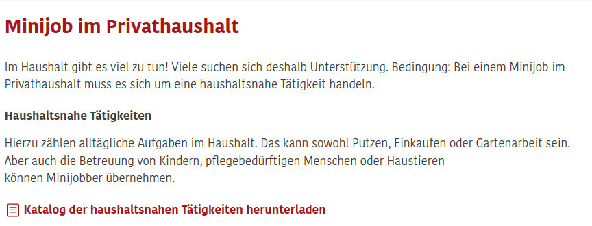 Variante Minijob für Privatpersonen als Arbeitgeber (nur haushaltsnahe Arbeiten):