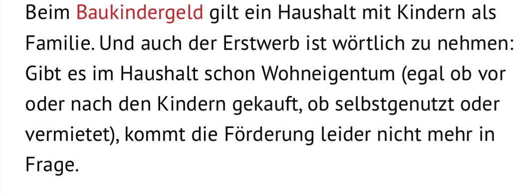 Scheinbar wurde das Baukindergeld ein wenig verschärft bzgl. des Ersterwerbs von Immobilie als Familie. Hier noch mal die Bestätigung das wir es mit dem Ersterwerb richtig verstanden haben. Dh. verschenken, verkaufen und anzünden dringen auch nichts.