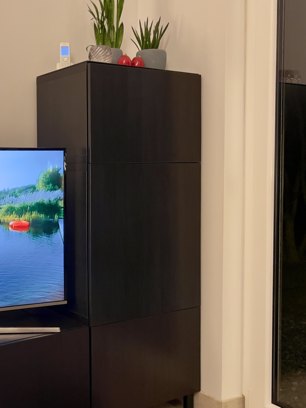 Die Fronten sind allerdings blasses Graugrün (Hjortviken). Gerade auch getauscht von hellgrau. Sehr tolle Farbe.Witzig… uralte Besta-Möbel… hellgraue Wand, und ich überlege, die Schränke in Grau/Taupe zu streichen…