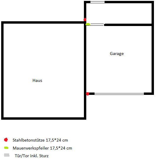 Versteh ich das richtig dass die 17,5 Poroton Steine vond er Statik her dafür ausreichend waren, dass du dafür aber die Stahlbetonstütze und den Mauerwerkspfeiler u.w. benötigt hast?