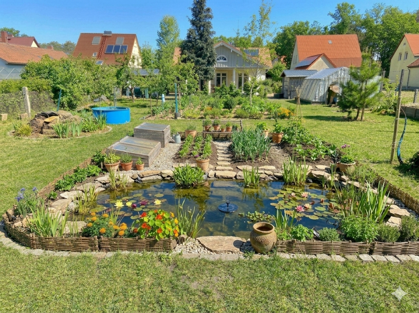 Wir haben am Wochenende mal mit Gemini rumgespielt und waren ganz beeindruckt, was die Software so zustande bringt. Man muss nur sein Foto hochladen und eine kurze Anweisung schreiben… sowas wie „erstelle mir einen schönen Gemüsegarten“. In einer nächsten Anweisung zum Beispiel „wir hätten gern noch einen Teich“… und das kommt dabei raus….