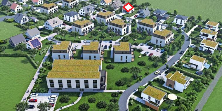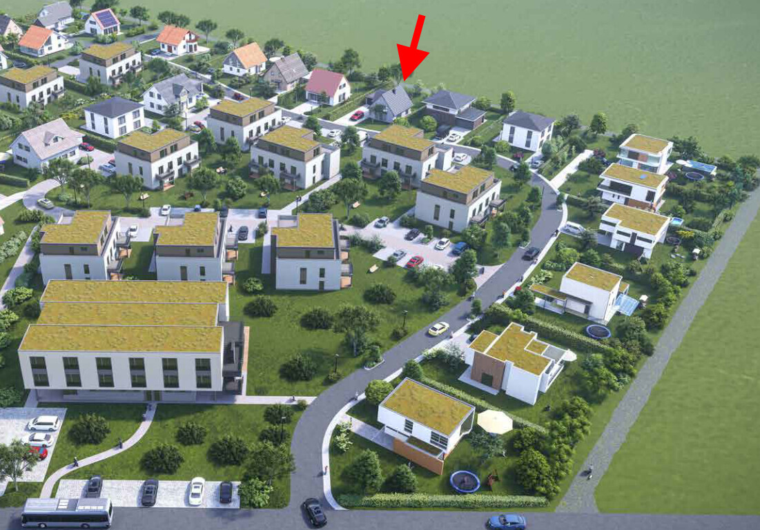 Ich habe mal in einem Bild aus einer Präse aus dem Netz Dein Grundstück markiert - zur Illustration, wie sich Entwickler des Baugebietes dessen Bebauung vorstellen: