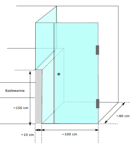 Glastrennwann fehlt noch, die muss (teuer) vom Glaser kommen.Vlt. muss er da vor Ort etwas suchen. Unsere ist wirklich sehr groß, 200x140cm und hat incl, Einbau + Chromstange, schicker Halterungen ca. €800.- gekostet. Etwas ums Eck aufgesetzt ginge es ja eh kleiner und evtl. auch ohne jegliche Halterungen, also nur mit Silokonfuge. Der Vorteil dabei ist, dass das Glas individuell geschnitten werden kann während die ohnehin teuren Fertigsysteme oftmals diese Abdeckschienen haben bzw. die Vorarbeit chirurgisch genau sein muss. Unser Glaslieferant hat dieses große, teilw. schräg verlaufende Teil sowas von exakt eingebaut, dass es eine Wonne ist, das anzusehen.