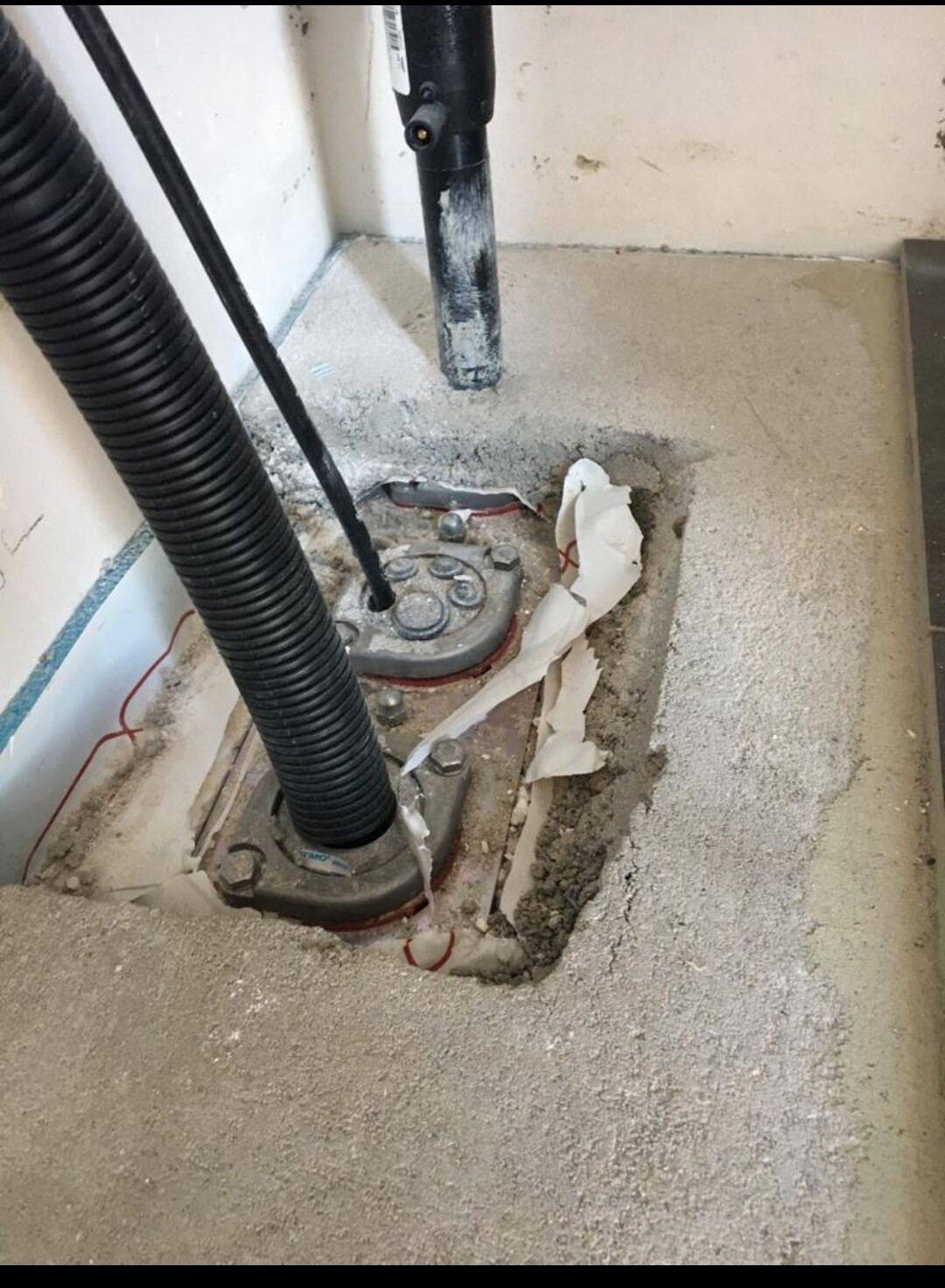 Normal ist die beim Einbau viel zu groß und wird erst nach der Fertigstellung des Bodens richtig angeschlossen. So,wa es bei uns. Aber dein Installateur war wohl eifrig. Macht nix, solange es ordentlich gemacht und dicht ist.