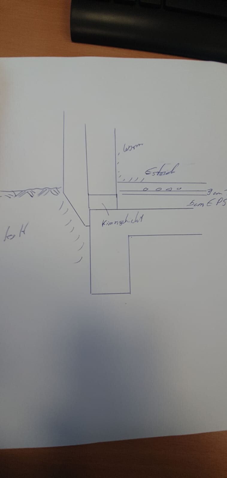 Wenn deine Zeichnung richtig ist, und ihr keine Dämmung unterhalb der Bodenplatte habt, behaupte ich, dass die mangelnde ISO-Kimmschicht schon ein Fehler ist.