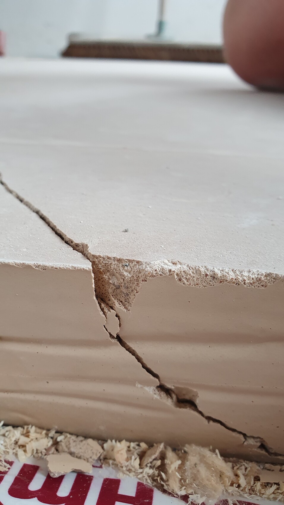Ist es ein Calciumsulfat-Fließestrich, was ich vermute, sollte beim Einsatz eines zementären Reparaturmaterials die Flankengrundierung mit einem Epoxidharz durchgeführt und dann "frisch-in-frisch" reprofiliert werden..
