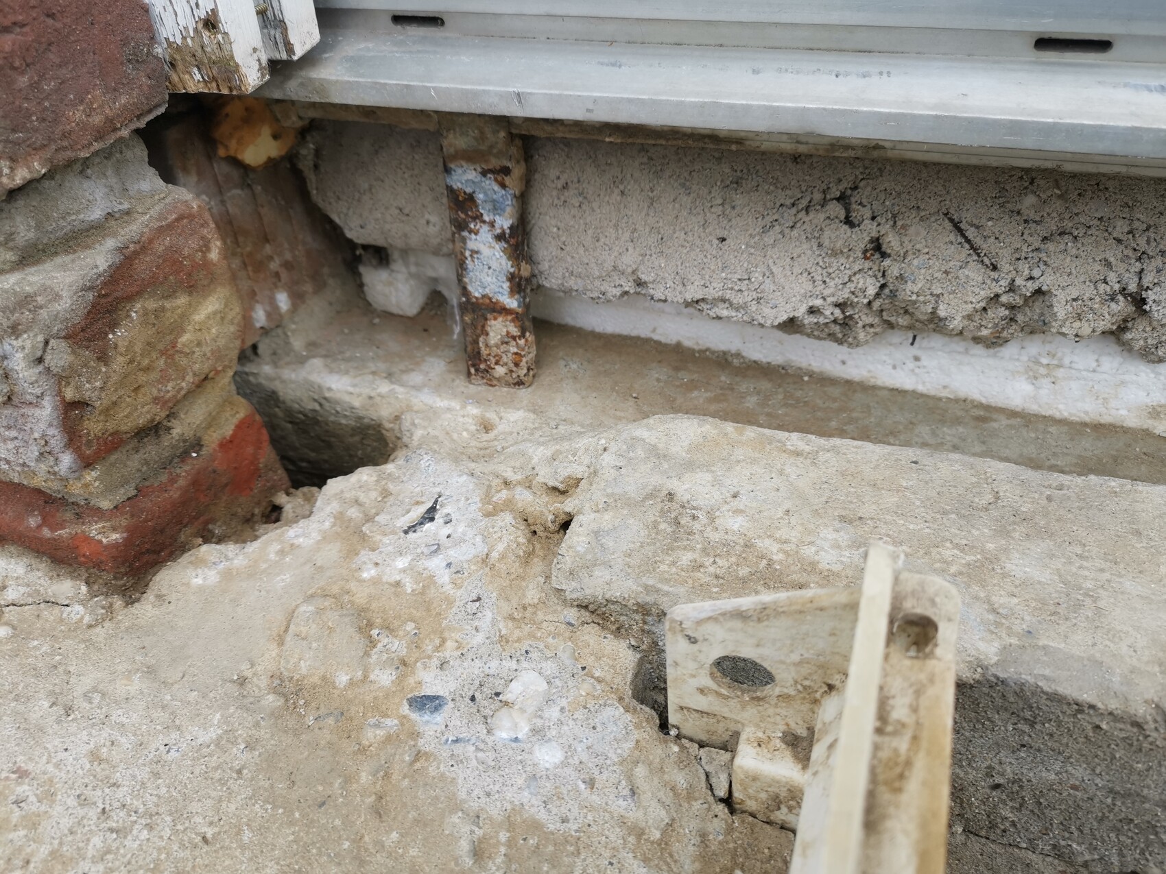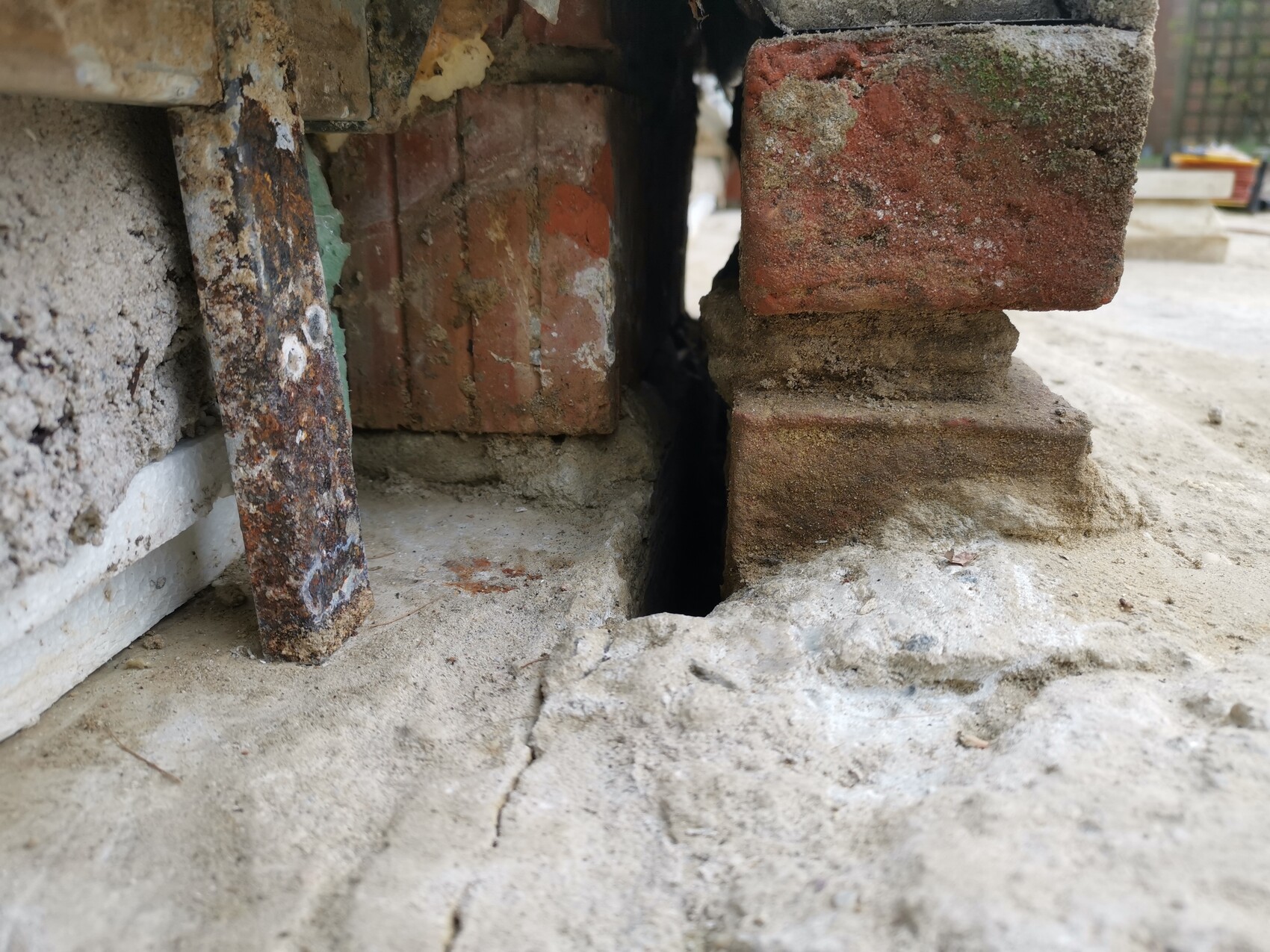 Damals hat man auf ganzer Hauslänge im Terrassenbereich Beton gegossen. Direkt an den Verblender - ohne Trennung. Vielleicht war damals zu viel bestellt - anders kann ich mir das leider nicht sinnvoll erklären.