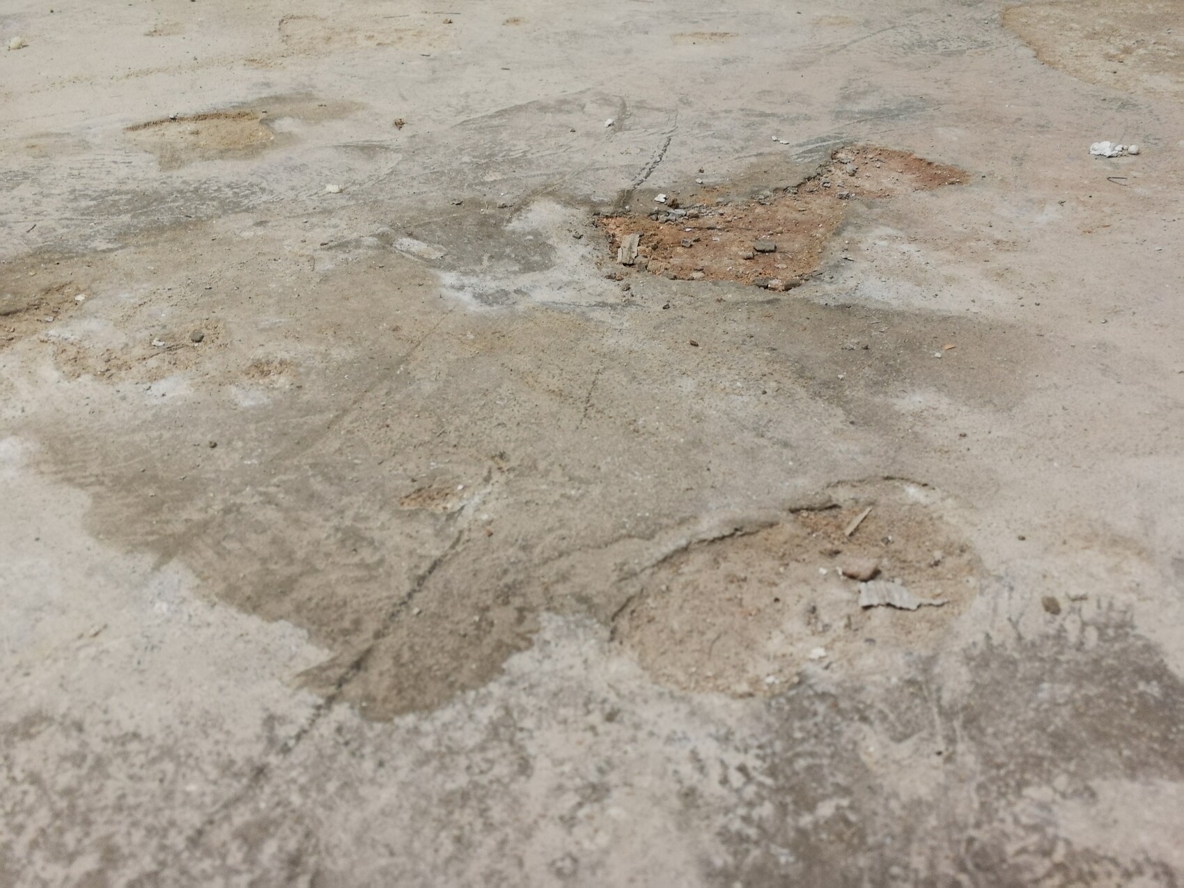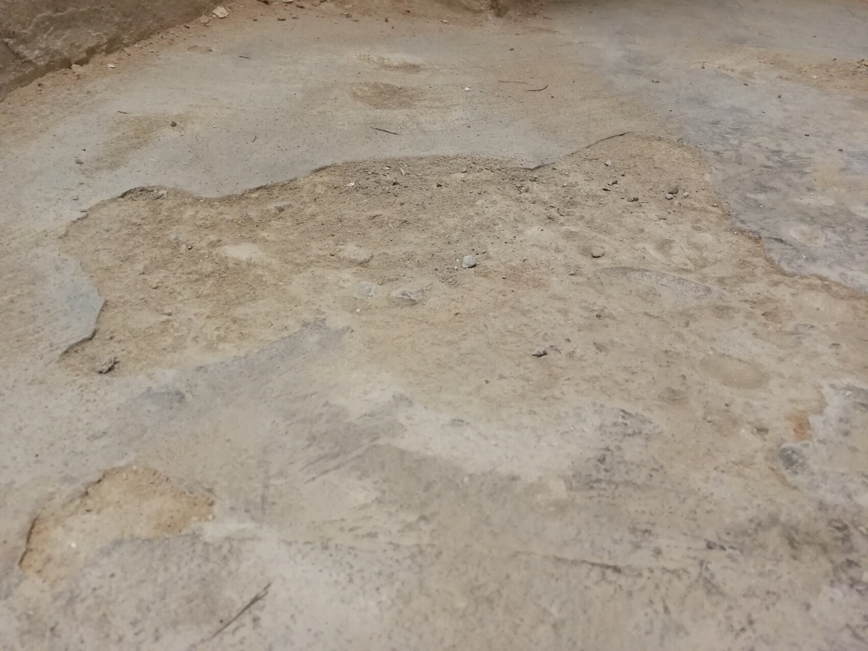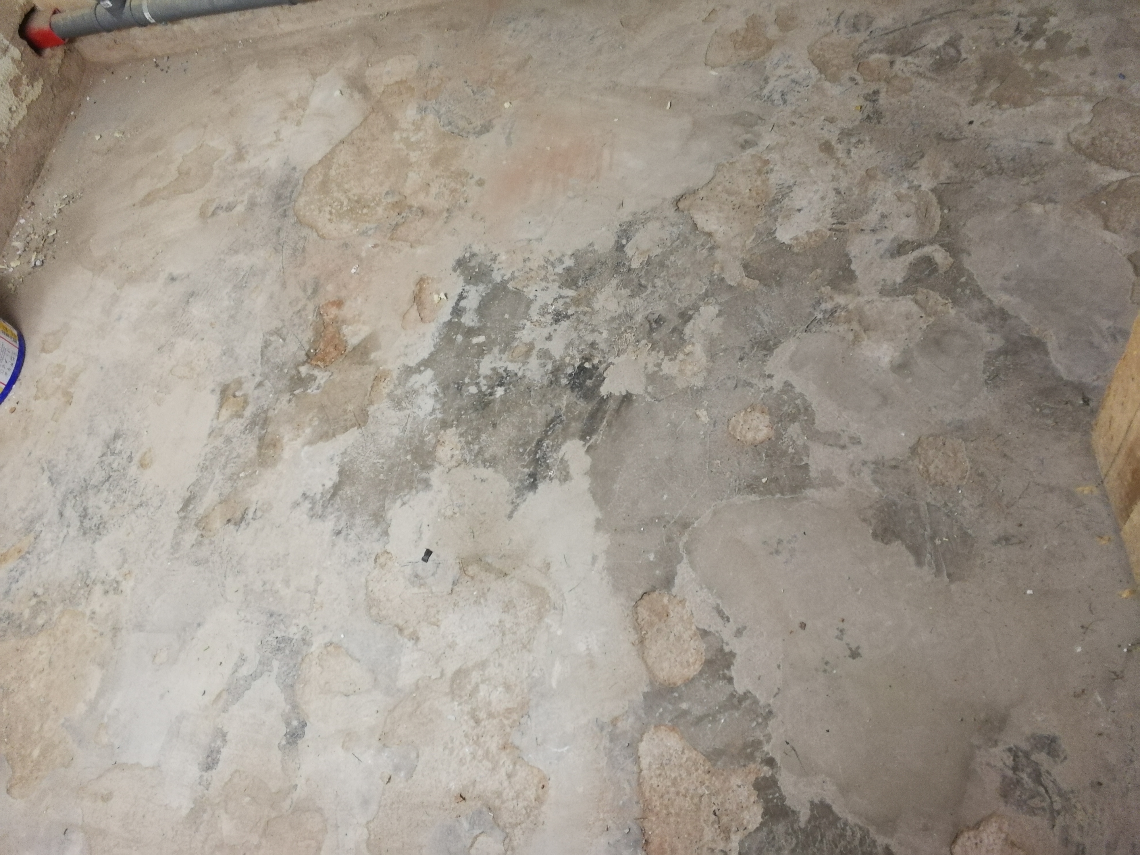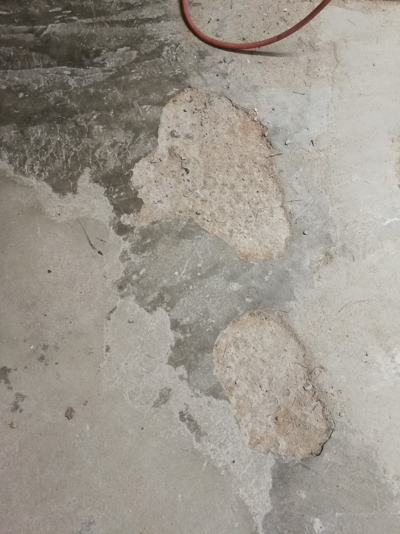Du solltest alles was locker ist entfernen und abschlagen. Am besten einmal mit einem Fäustel / Hammer den ganzen Boden leicht abklopfen und alles was abbröckelt oder absplittert entfernen. Nicht mit dem Vorschlaghammer den Boden zerstören sondern mit einem 500g Fäustel locker "fallen lassen". Wenn sich etwas hohl anhört, entfernen!