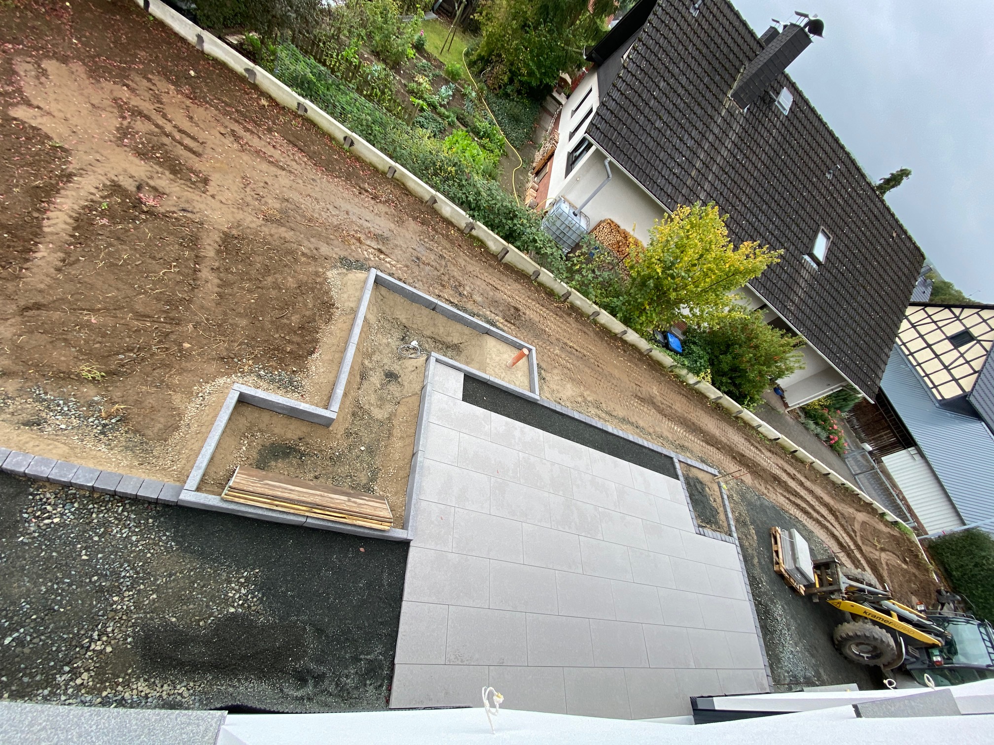 An einem Tag gerade mal 5m Randsteine gesetzt. Wenn das so weiter geht ist der Garten erst 2022 fertig