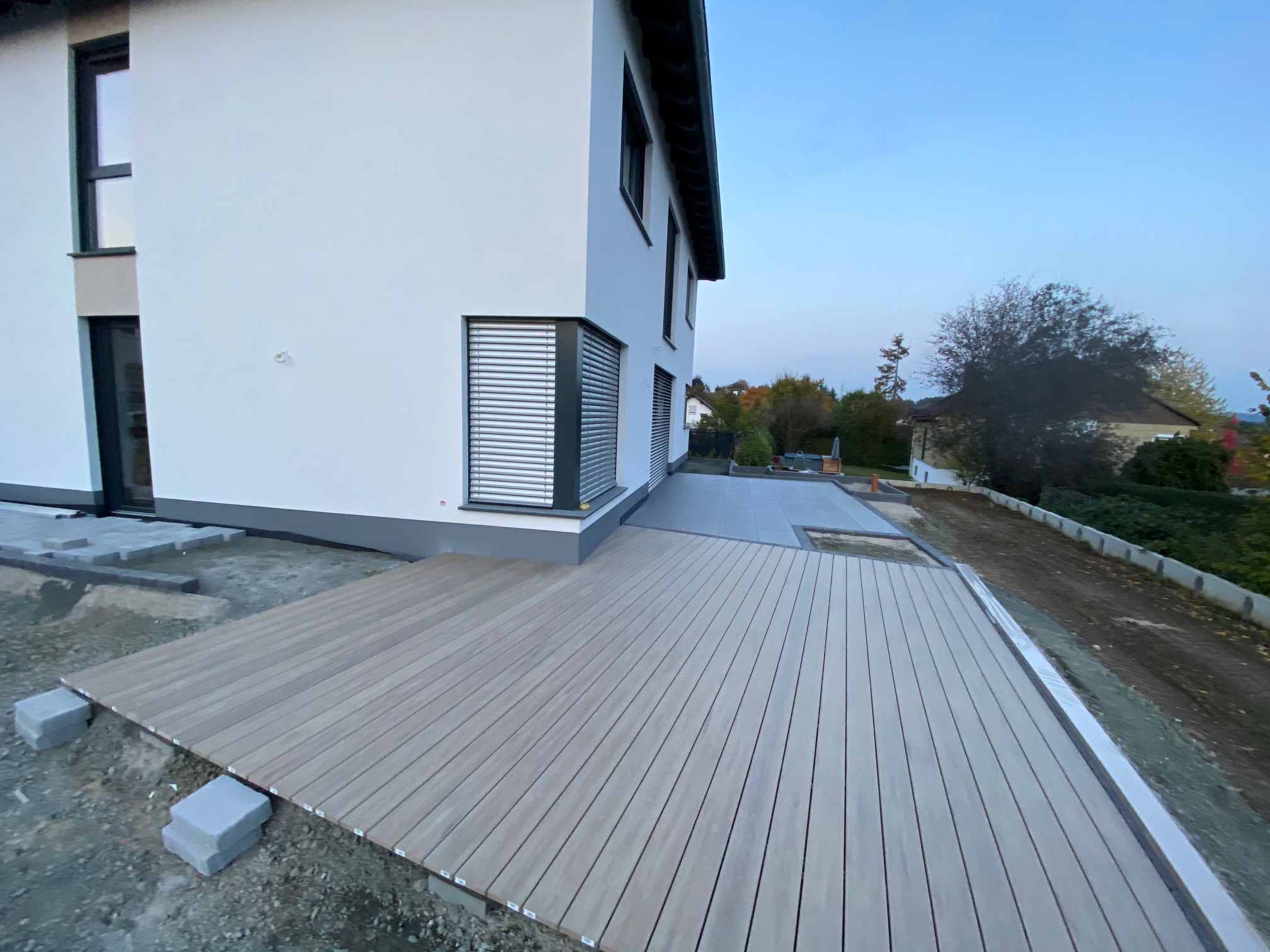 die Garten-Landschaftsbauer sind mit Abstand der langsamste Trupp bislang auf der Baustelle