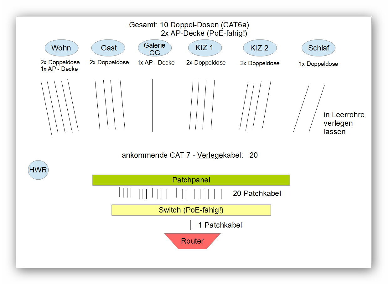 (oder muss ich für einen Accesspoint auch eine Dose kalkulieren?).Ja, natürlich kommt der Accesspoint auch an eine Dose. Verlegekabel sind dicker als Patchkabel.SenorRaul7 schrieb: