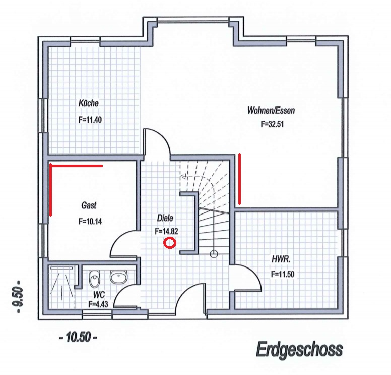 Die beiden Kreise in den Flurbereichen könnten zwei Access Points an der Decke werden.