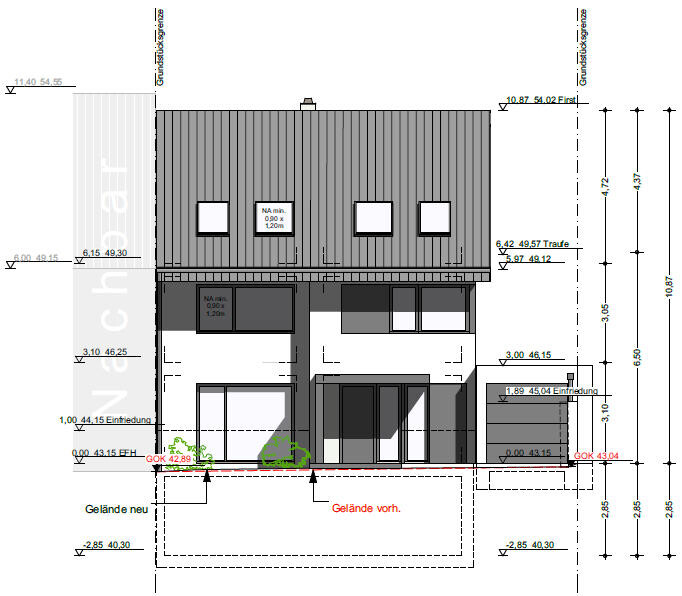 Wobei ja die rechte Seite nun auch nicht symmetrisch ist und wie sieht das Ganze denn unten mit der Einsehbarkeit aus? Mit dem Fenster dort kann man euch ja ggf. komplett reingucken!?
