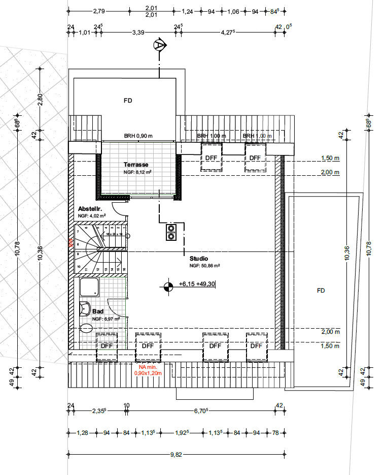 (Die Frage ist, ob der BU irgendwo einen Versorgungsschacht weiter mittig plant, aber das erscheint mir dort unsinnig wegen der Treppe)
