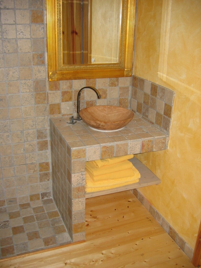 Damals war das Mediterrane angesagt, weshalb ich dann eine passende Lasur genommen habe (z.B. Caparol) und diese durchgehend auf gleiche Weise !!!! im "Kreuzschlag" aufgetragen habe. Es sollte einer alleine machen sonst sieht man später den Unterschied. Es wirkt ruhig und man kann damit spielen; dazu ist es super leicht aufzutragen. Wir hatten damals vorher Null Ahnung; der Maler bei dem wir das kaufen erklärt es uns.