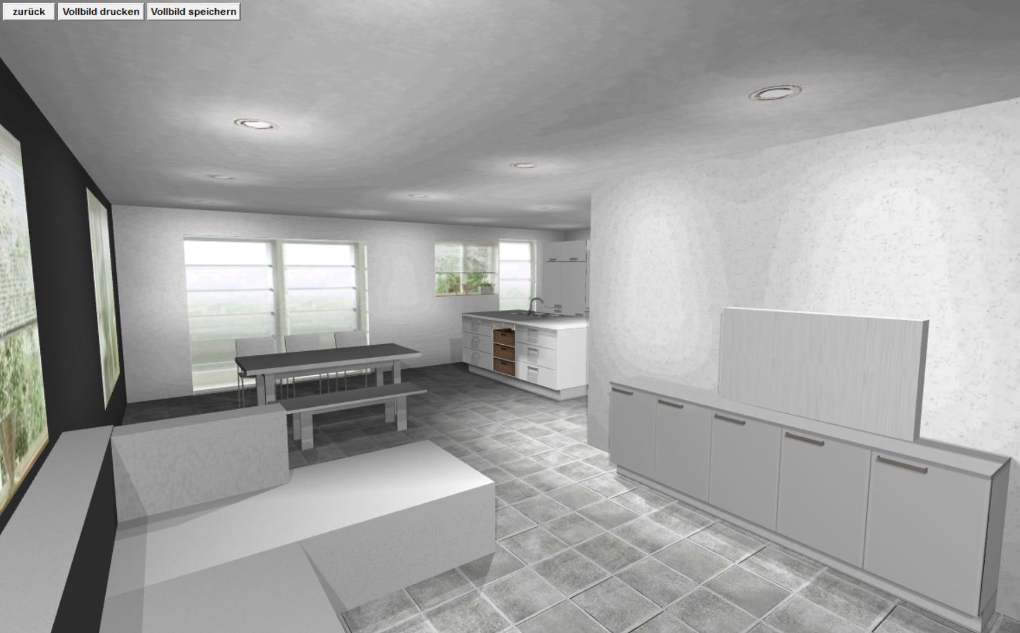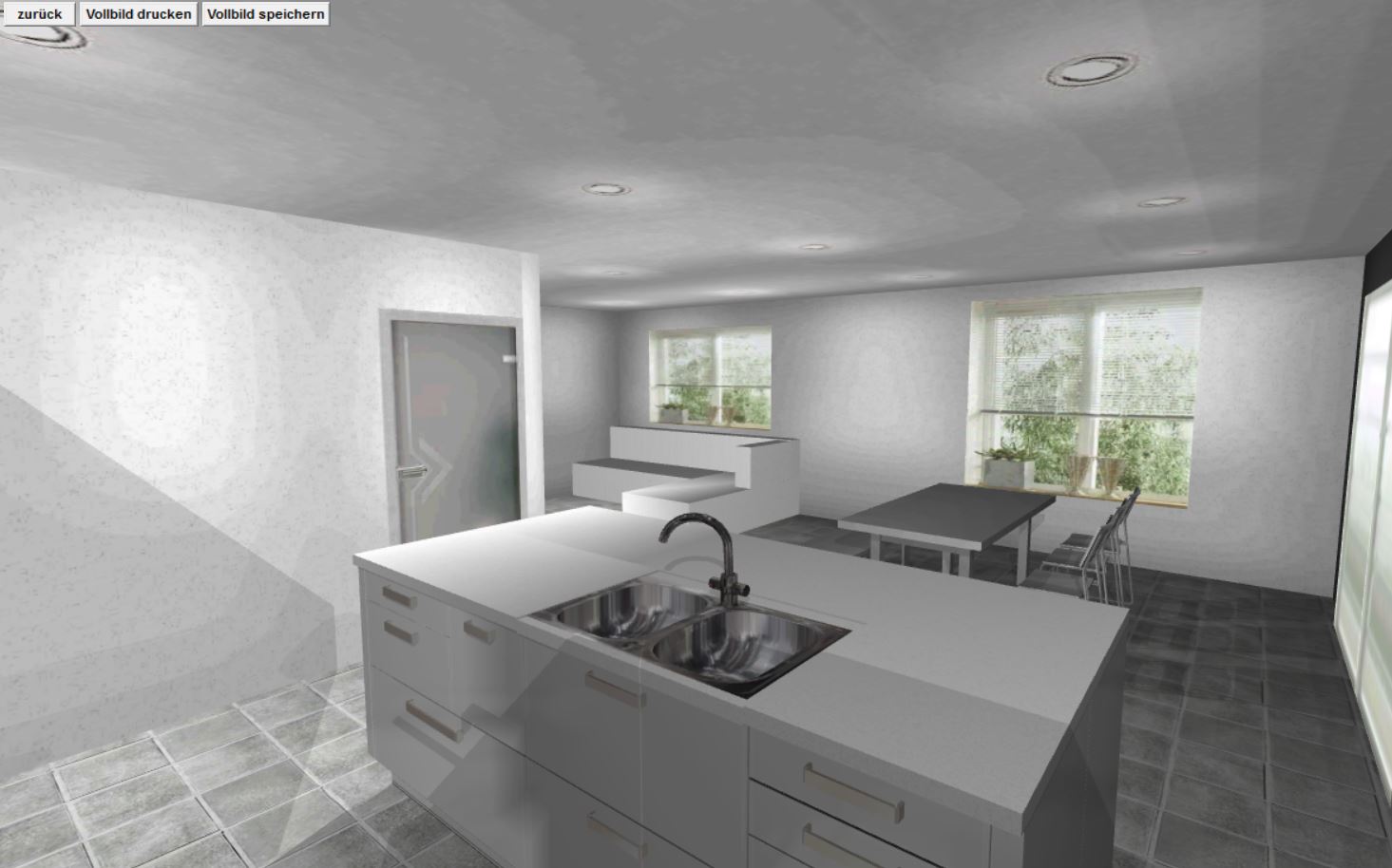 - Fliesen im Küchenbereich etwas schwieriger (nur zwischen Wandzeile und Insel wäre wohl die einzige Möglichkeit, aber da sind wir uns nicht sicher, ob das gut aussehen würde)