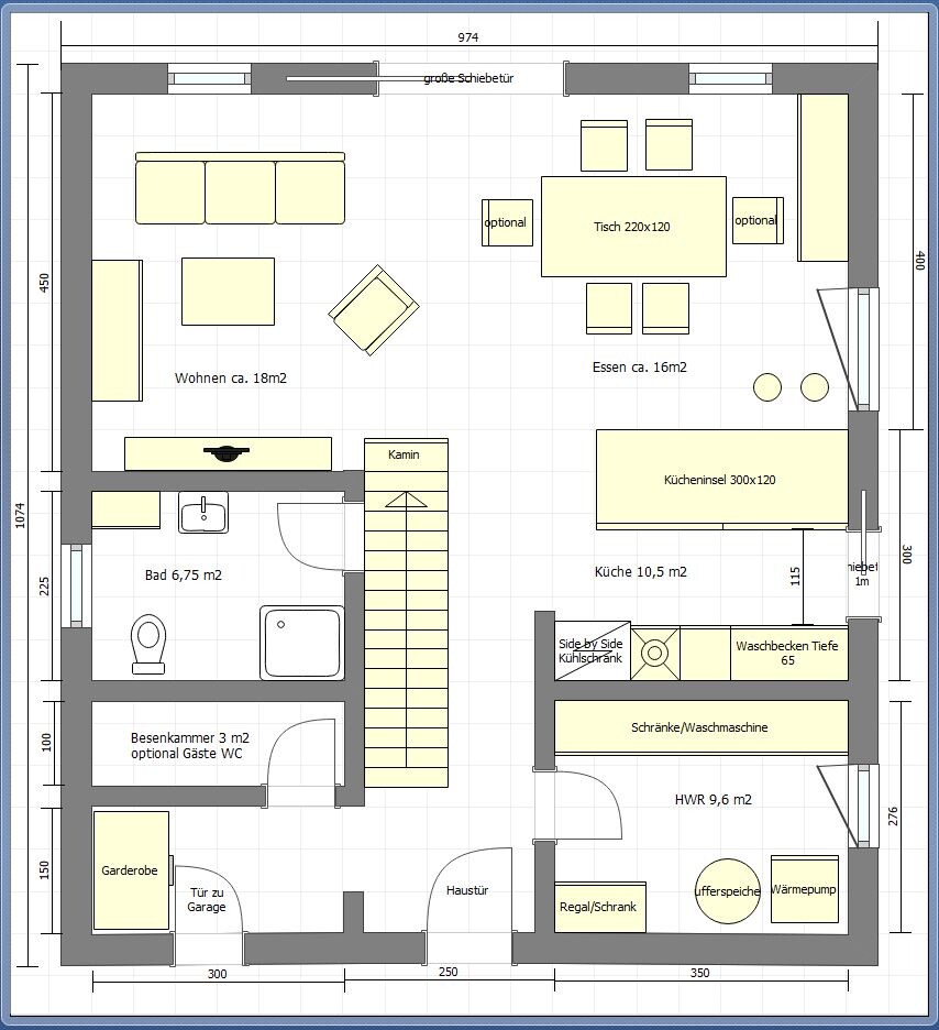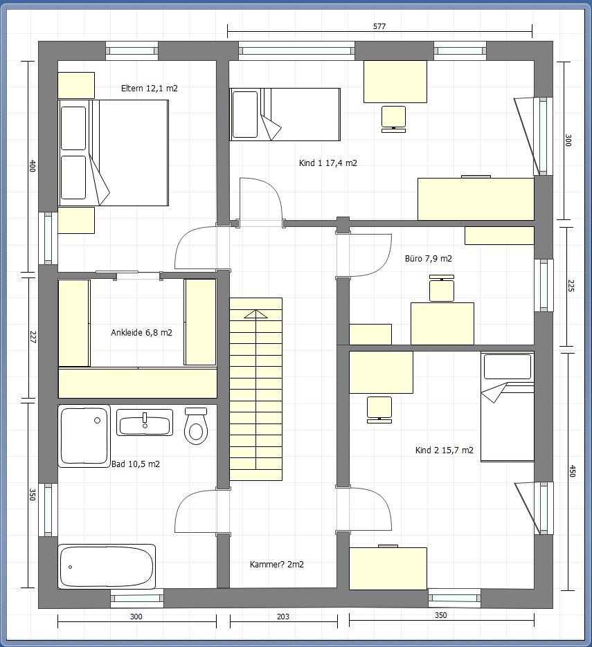 Ja, da habe ich mir jetzt auch keine Mühe gemacht, nur mal das Wesentliche reingepackt. Wenn möglich würde ich dort gerne eine T-Wand einziehen.