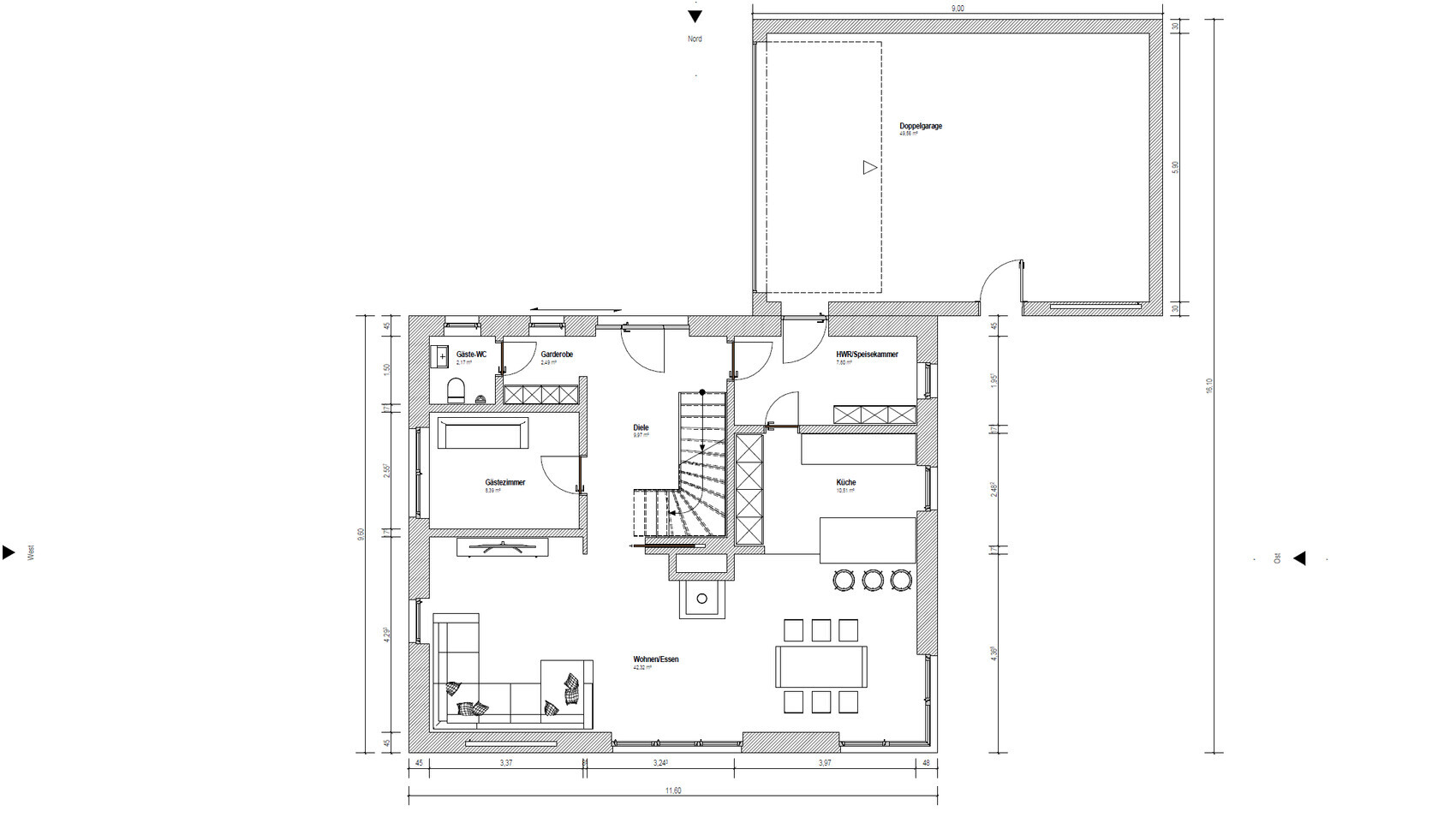 ...Und hätte die Frage: tut der Keller Not? Andere mit zwei Kids brauchen nur 1/4 von Speis/Technik/Waschen/Abstell.
