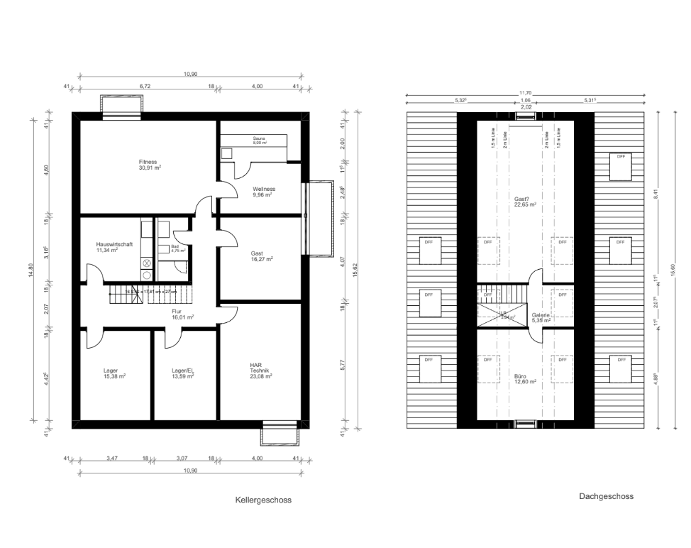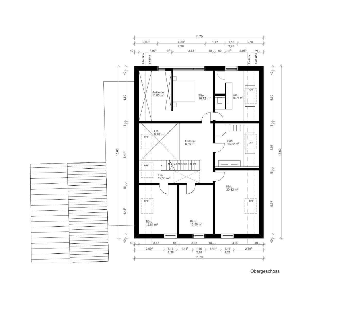 - Der 2. DG-Raum hat eine Trennwand bekommen, sodass daraus ein geschlossenes Zimmer entsteht