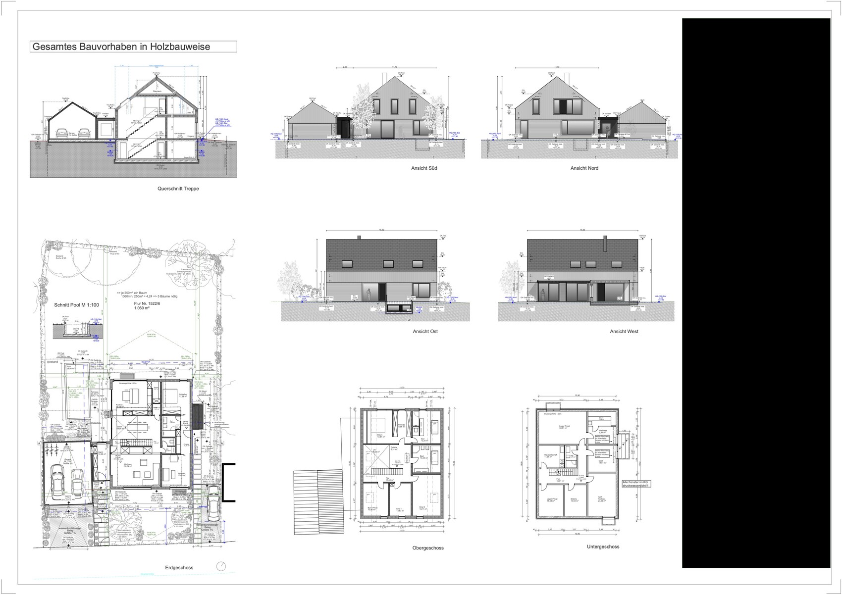 - Ihr werdet im Grundriss die neuen Deckenhöhen (EG 3m, OG 2,5m) sehen, was somit keine vollen Wohnräume im Dach generiert wie ursprünglich erhofft