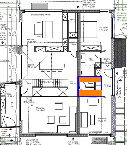 - Wir haben uns nach einigen Gesprächen für eine Innenarchitektin & Einrichtungsberaterin entschieden, mit der wir die Arbeit noch nicht begonnen haben, die uns aber bei der Innengestaltung helfen wird und auch nochmal Impulse für den Grundriss gibt -> Änderungen, die keine essentiellen Eigenschaften beeinflussen (Baukörper, Deckenhöhen,...), werden wir noch nachträglich einfließen lassen können
