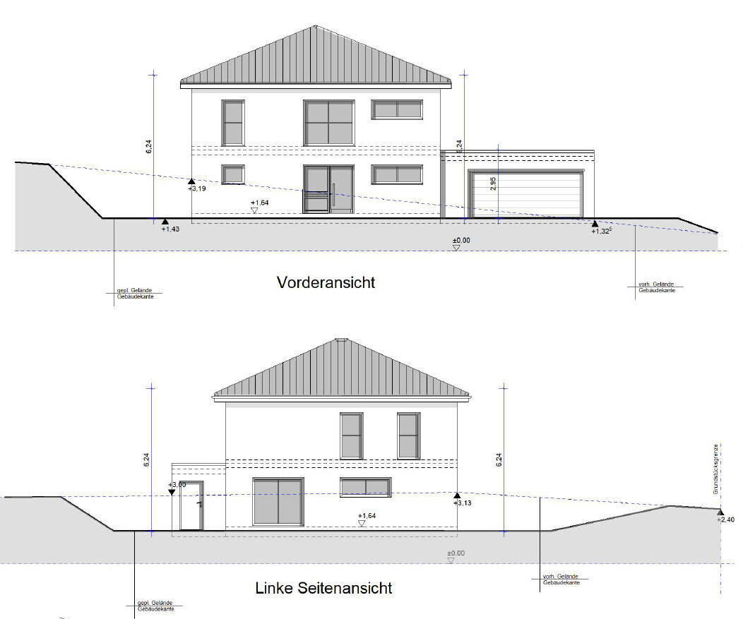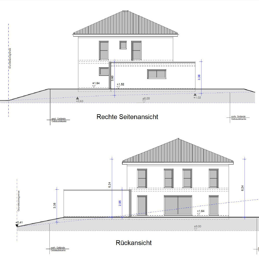 Das ganze Haus inkl. Garage ist noch einmal in Richtung Norden gewandert um auf der "Gartenseite" ca. 2m mehr Garten zu haben.