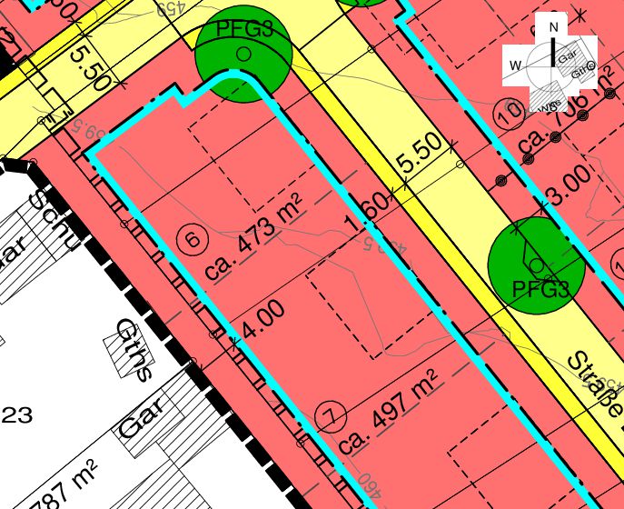 So, anbei der Lageplan, es ist Grundstück No 7. Der Plan ist genordet, hab den Nordpfeil reinkopiert